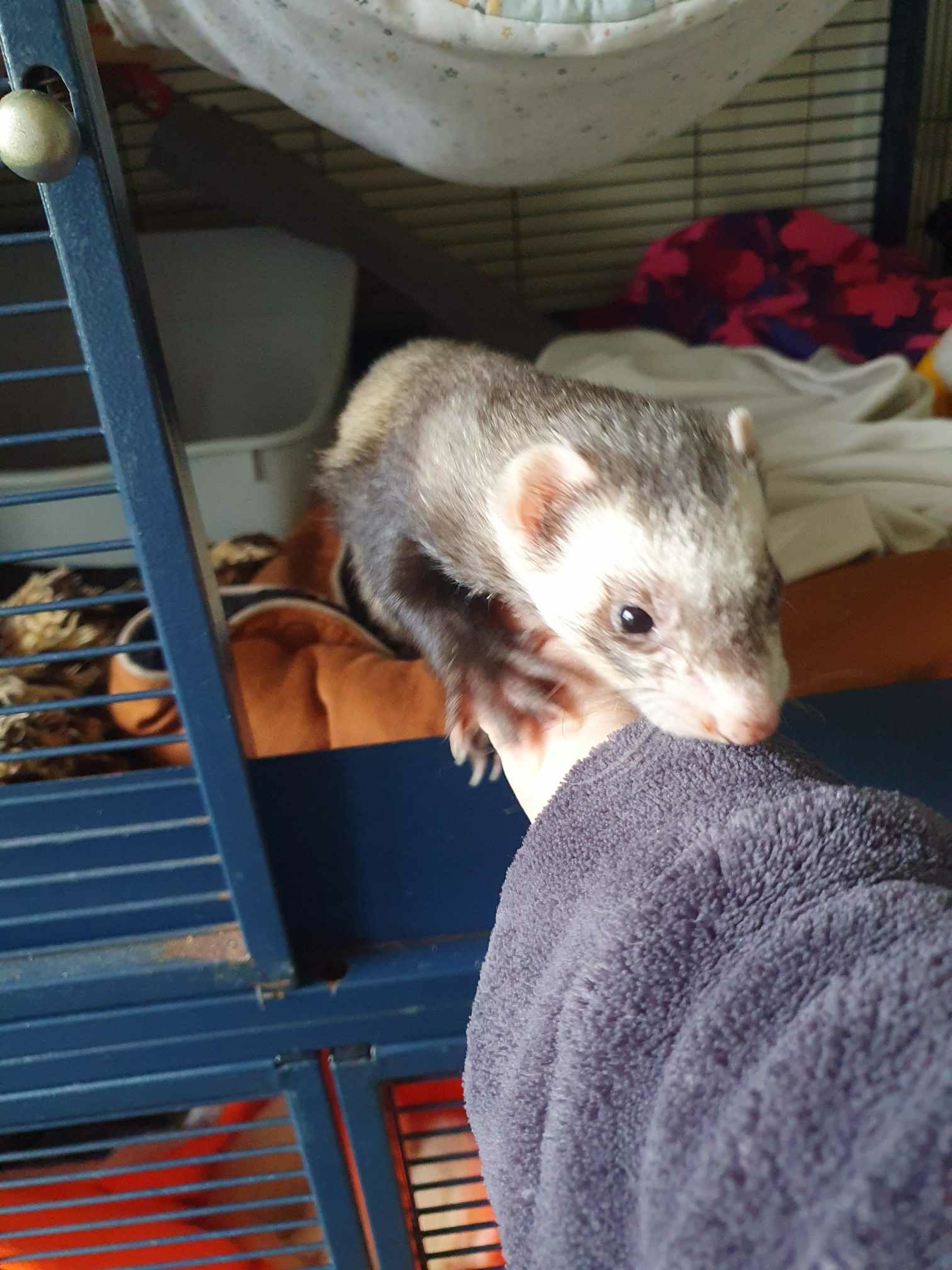 Malia est en train de rencontrer mes fouifs pour voir si tout se passe bien avec les autres furets, et franchement pour une fifille elle est top ! même pas de cris, juste des ptits poutpouts, pas de pipi-caca partout. Alors que Monsieur Papatte c'est quand même un sacré boulet avec les autres fufus quand ils les rencontrent, il est pas méchant mais il les colle et les traine par la peau du cou un peu partout et va les ranger avec ses jouets. Titi lui il sniffe le cucul et il va voir ailleurs.