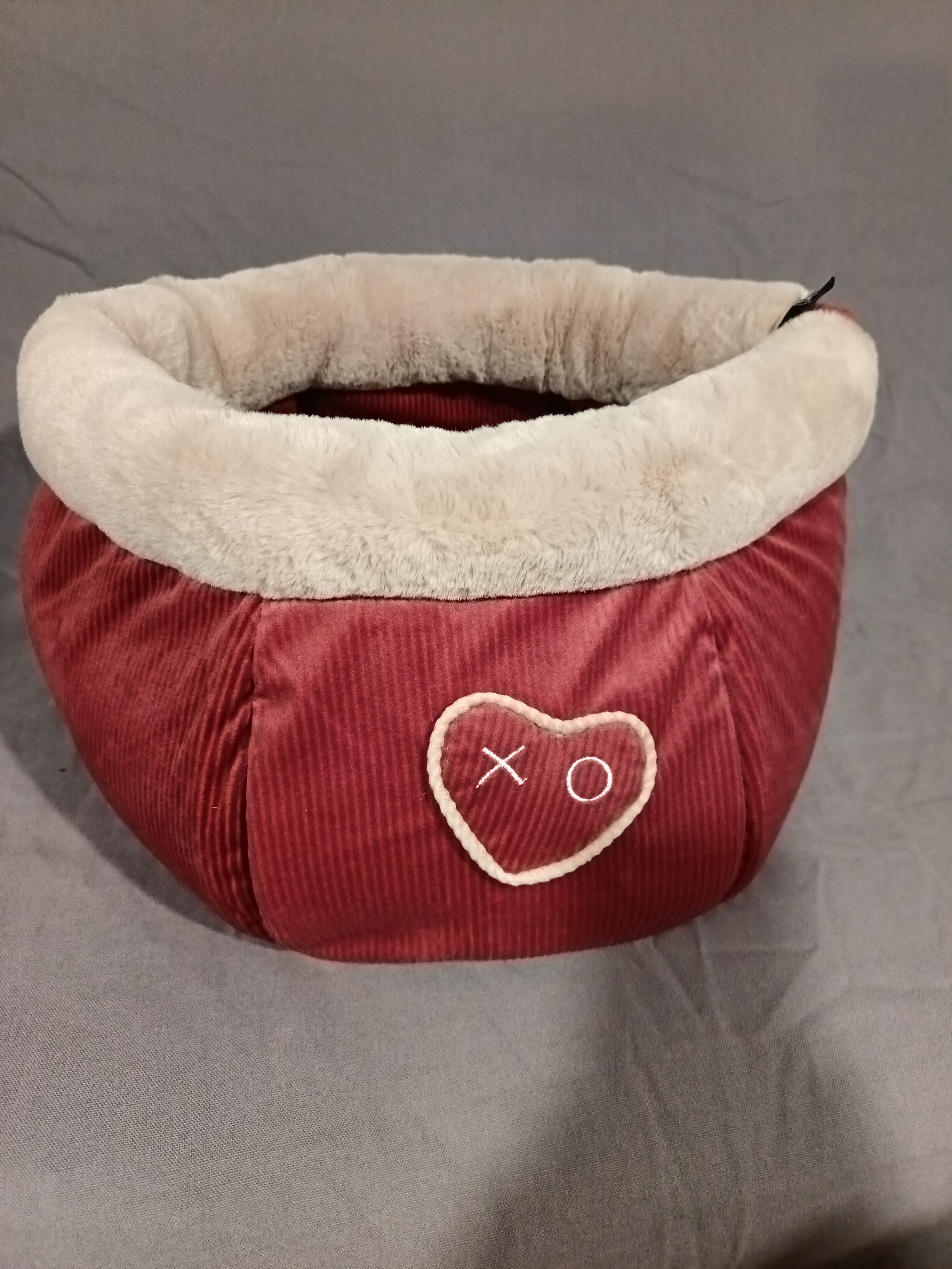 Tissus : coton rouge à rayures avec un imprimé cœur et pilou-pilou beige