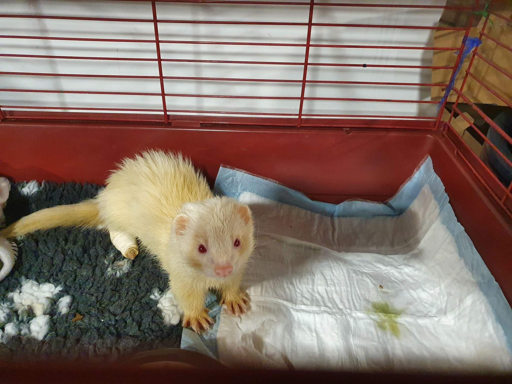 Monsieur Socute va très bien, il se déplace bien, il mange bien, il dort peinard, il réclame des câlins, il ne pleure pas du tout, il s'appuie déjà sur son moignon pour faire le suricate (il est tout le temps debout ce furet, donc il a pigé que avec une patte seulement, c'était plus compliqué donc maintenant il fait le suricate assis sur son derrière).