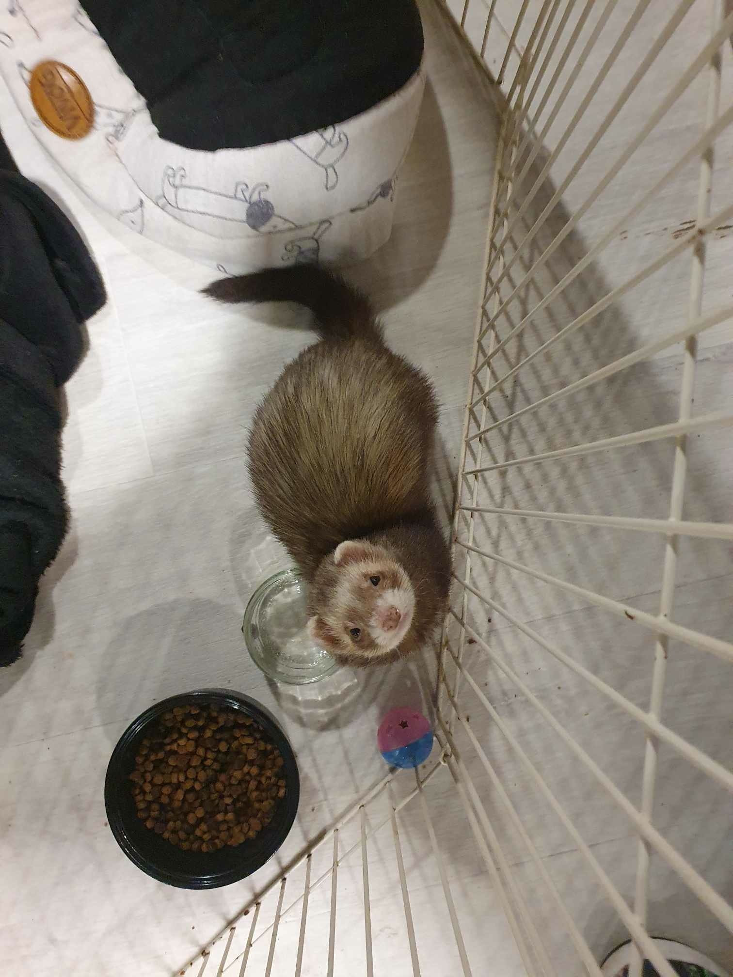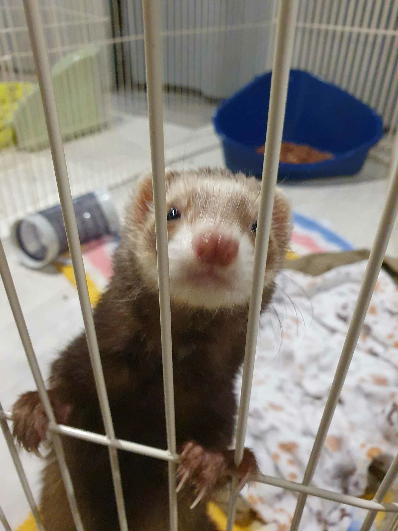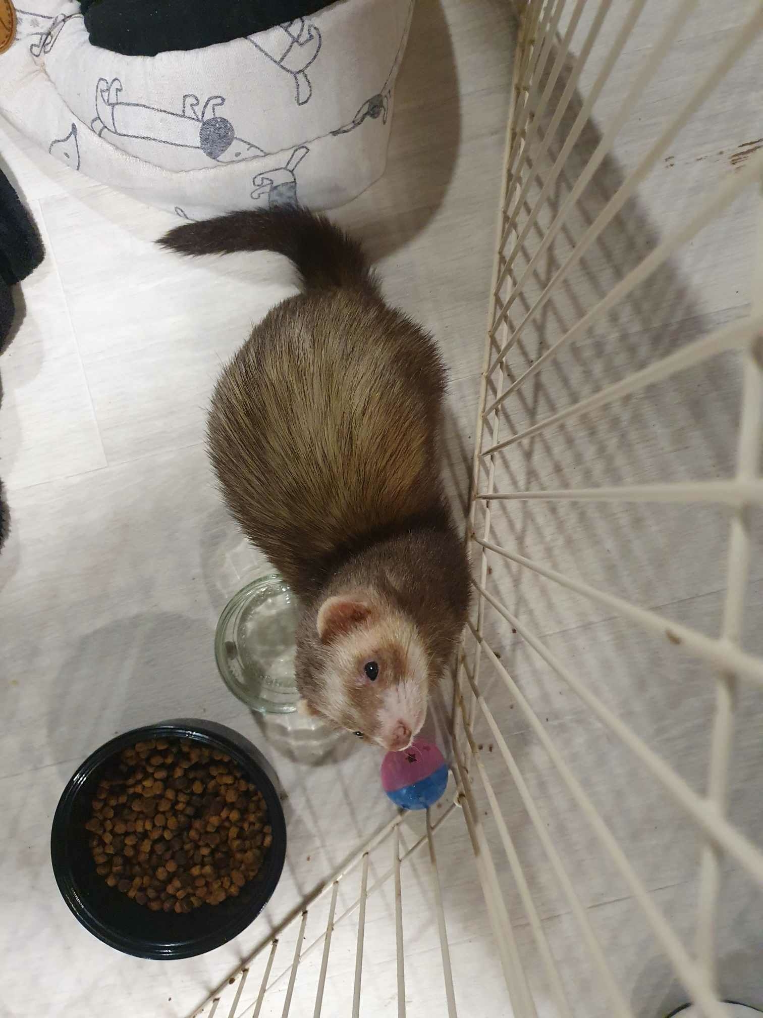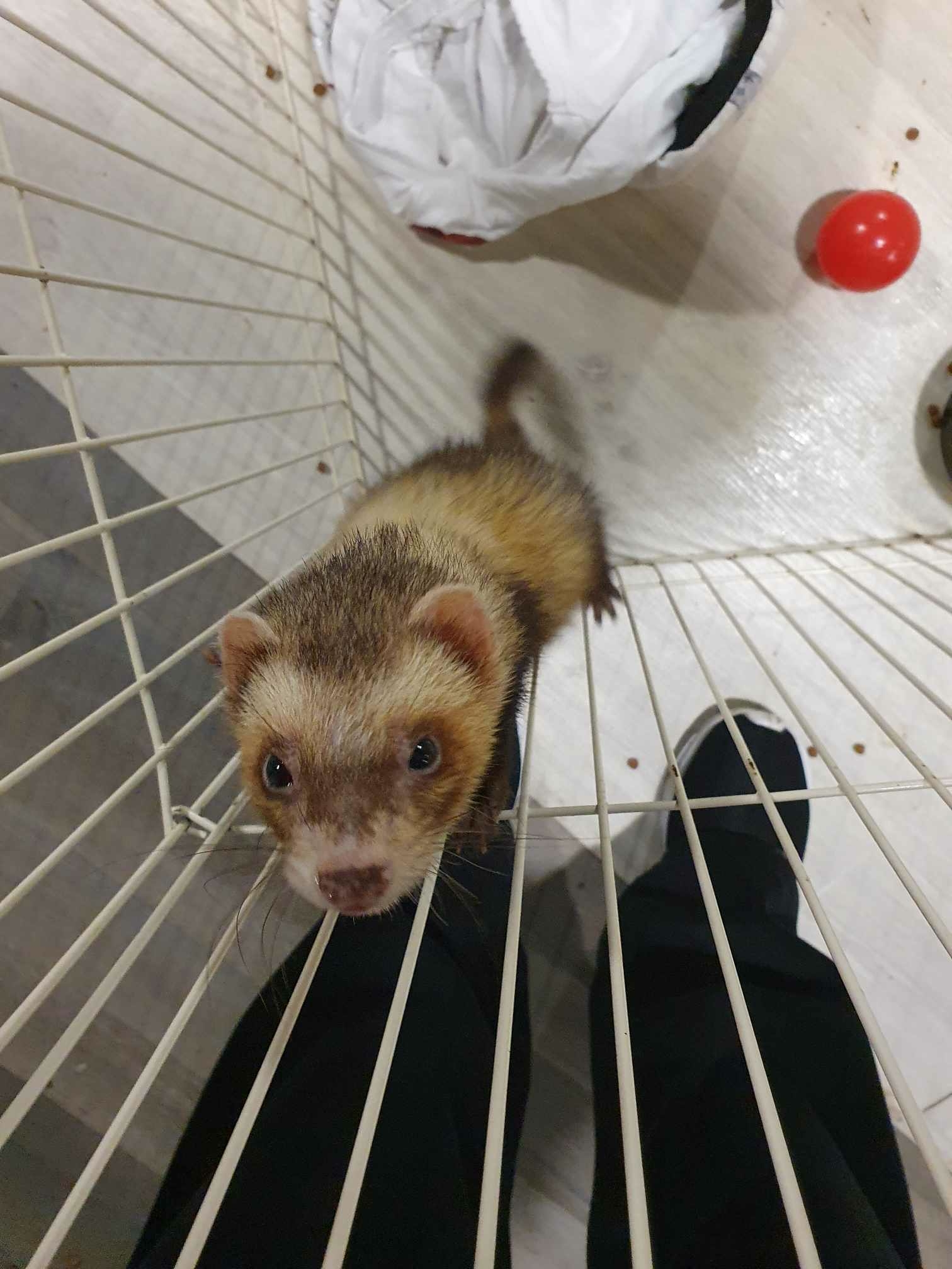 Ses poils repoussent, il va être très très beau ce fufu, et il est gentil comme tout. Et pour un furet en rut il est très propre, je compte un accident par jour en dehors de la litière, ce qui est excusable avec les hormones.