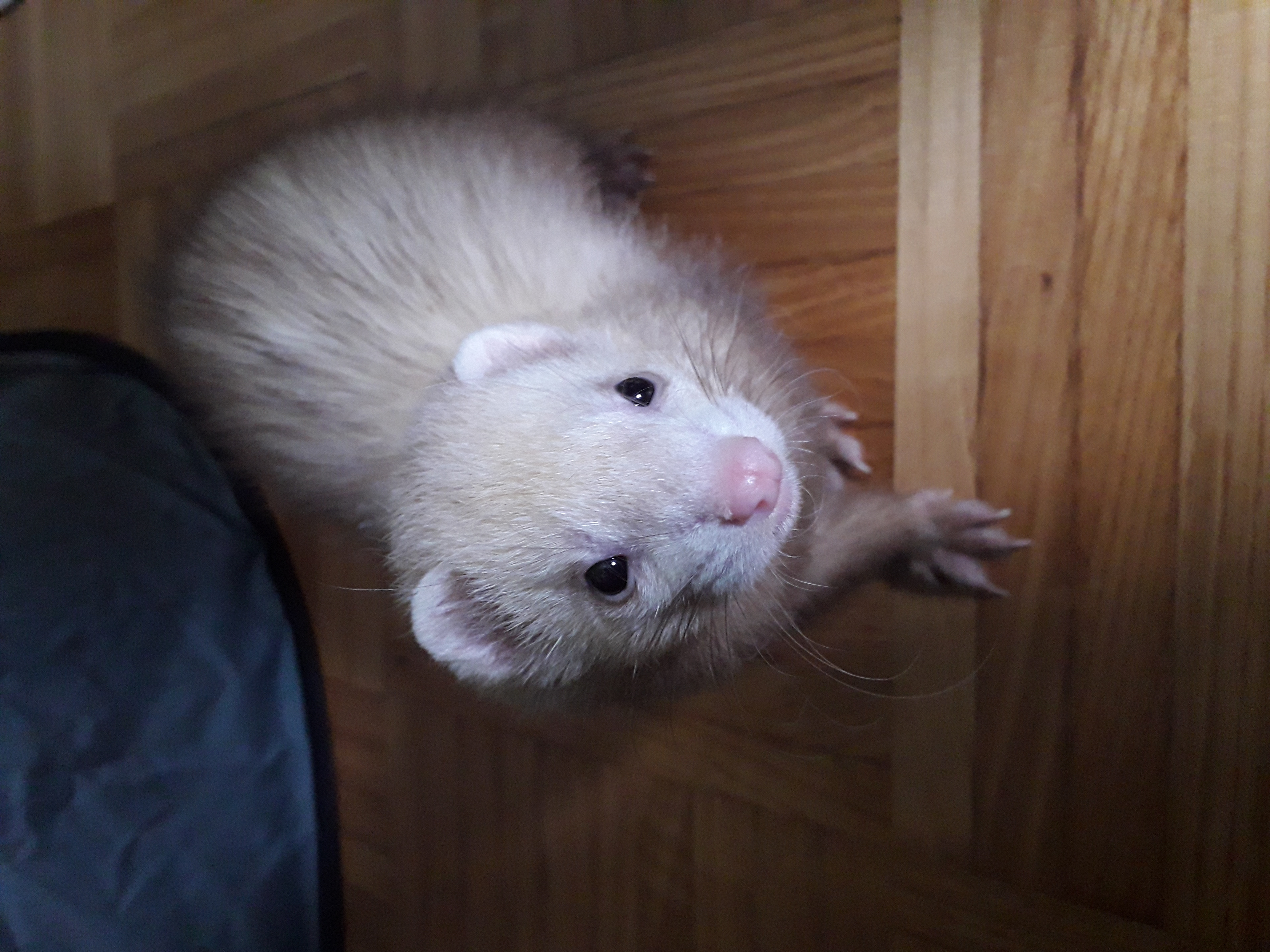 Je tenais à éviter qu'elle se sente en prison, donc j'ai rouverte la porte à chaque fois. Puis attendu, interagi, joué avec elle. Elle se montrait déjà très à l'aise avec moi, elle adorait surtout monter sur mes épaules puis sur mon dos. J'ai pensé qu'elle voulait voir de plus haut l'environnement. J'ai donc fait une promenade avec elle dans toute la pièce, sur mes épaules à quelques reprises.