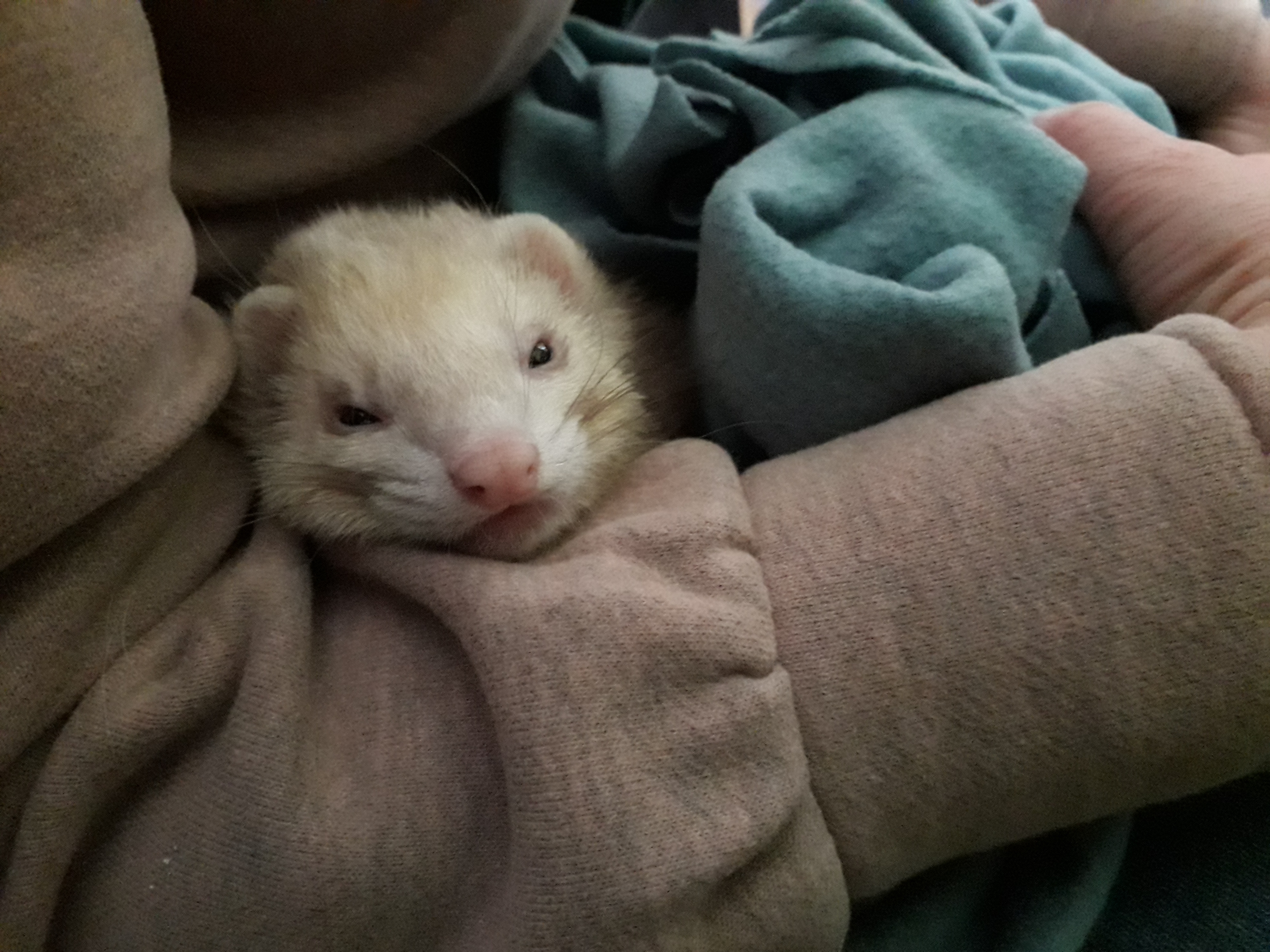 A la fin, elle a fini par se blottir sur mes genoux, se laissant caresser et tomber dans le sommeil petit à petit. Je l'ai donc placée dans l'enclos, sur son nid douillet, tout en gardant ma main avec elle dedans, afin qu'elle s'y sente toujours en sécurité.