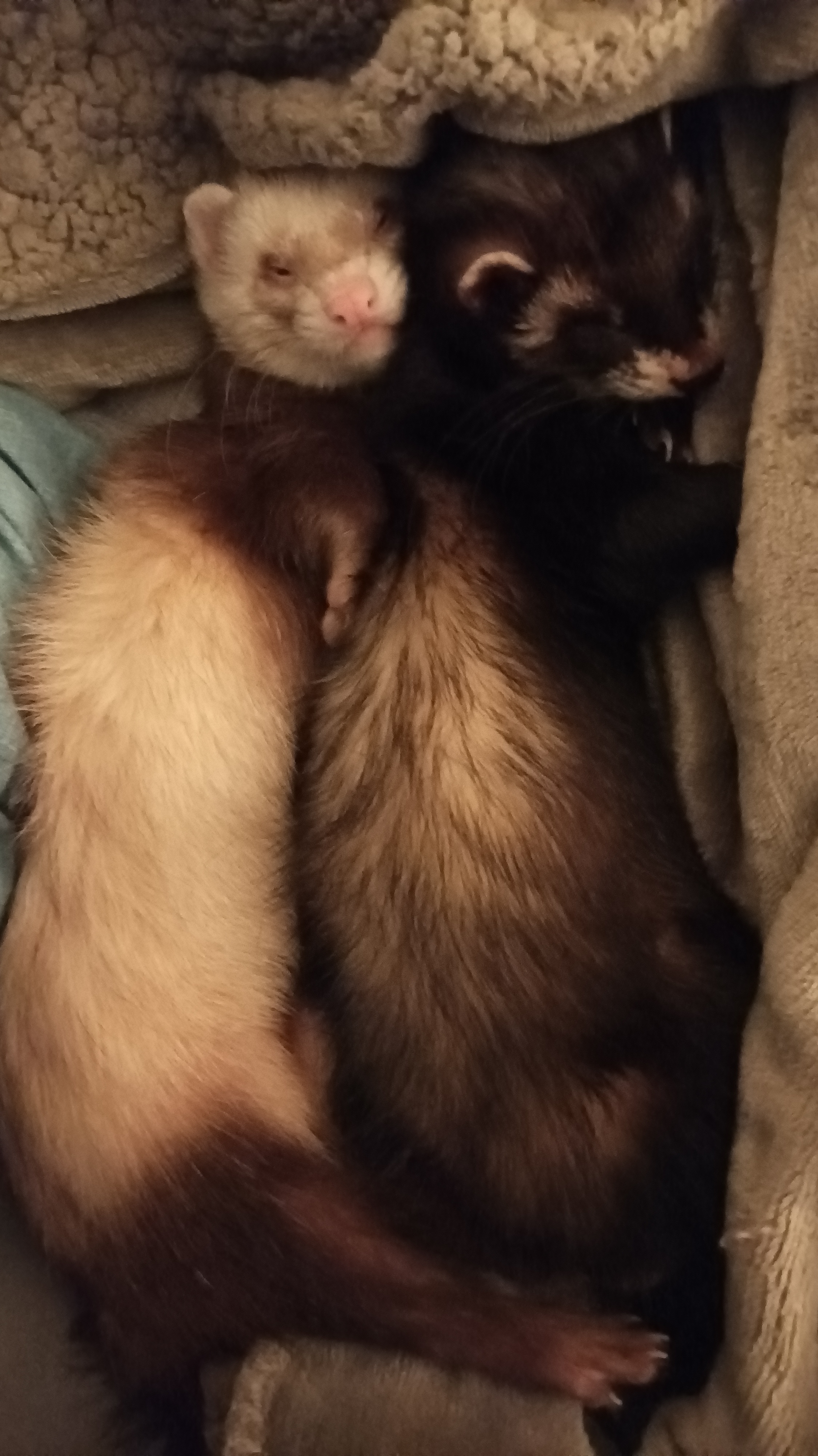 Ce sont deux mâles tous les deux nés courant avril, le furet self black est Oden (ID 250268743881085) et le furet couleur champagne est Spencer. (ID 250269590892779). Ils sont castrés, vacciné carré (mais pas rage) et identifiés. Ils ont tous les deux un carnet de santé.