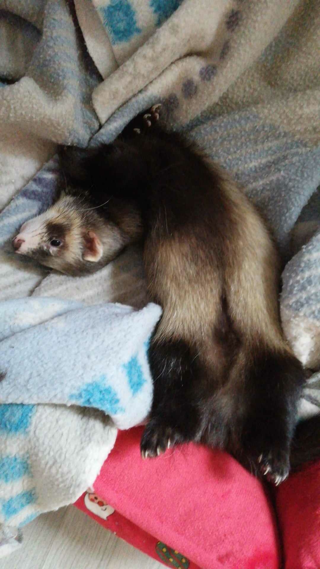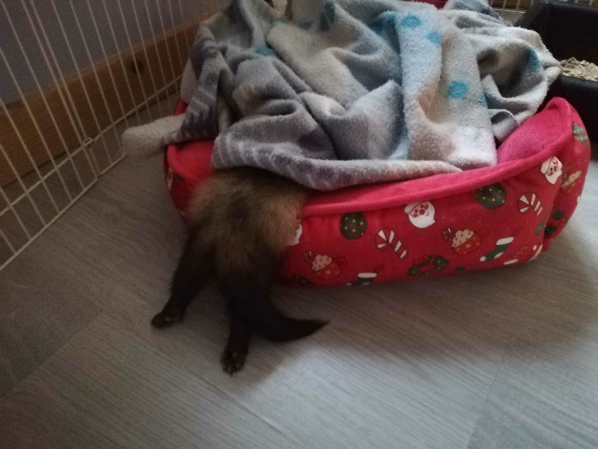 C'est officiel, Mouchou n'est pas un furet, c'est une loutre. Il adore tellement patouiller dans l'eau que je dois changer les serviettes en dessous de la gamelle tous les jours, il en met partout et forcement il saute dedans et laisse des empreintes de pattes dans tout le couloir
