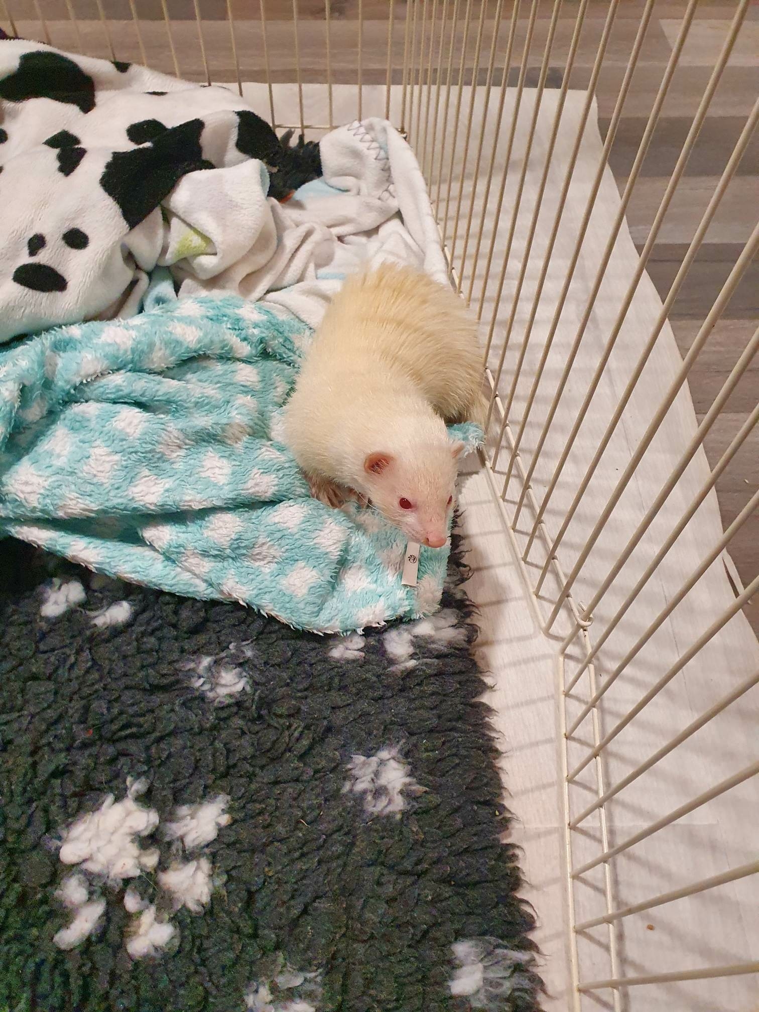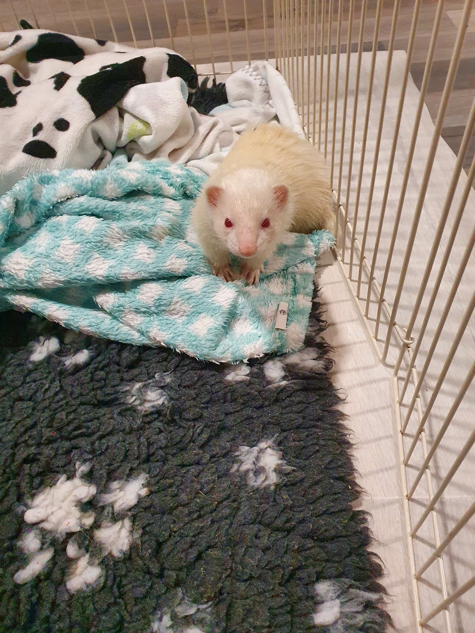 Et la voici donc arrivée chez moi. C'est une belle albinos toute timide mais gentille et propre.