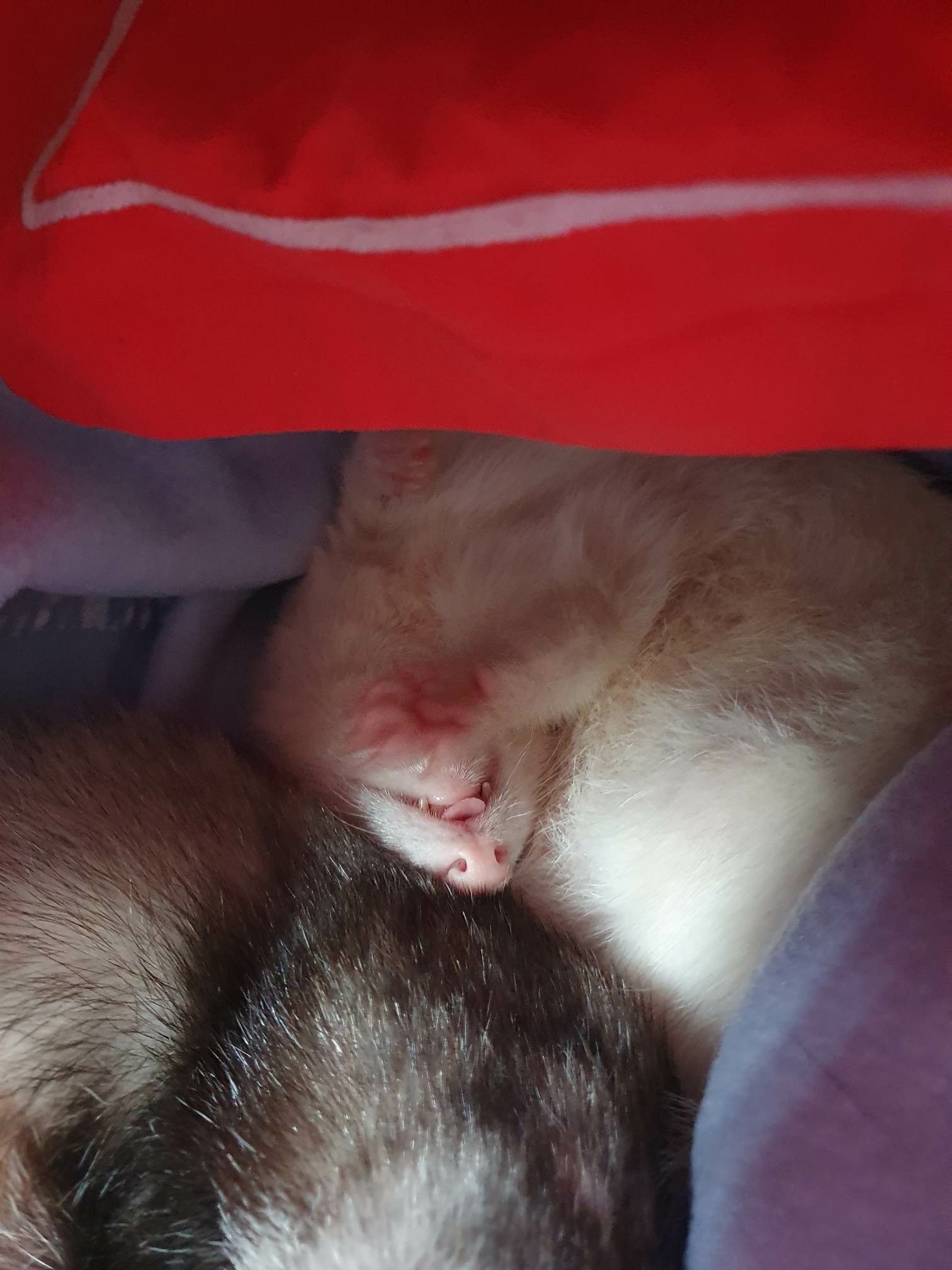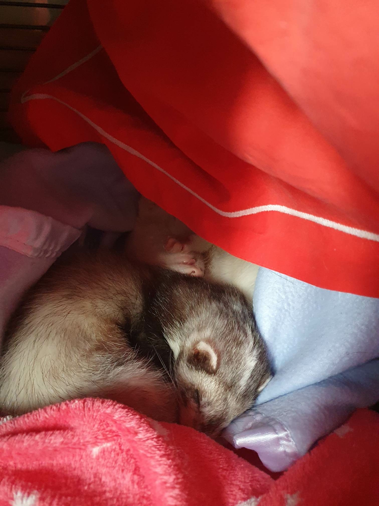 Morenn et Malzenn rebaptisée Mystik et Coquelicot ont fait craquer leur famille d'accueil, Nemamiah, et vont désormais être des furettes heureuses pour toujours !