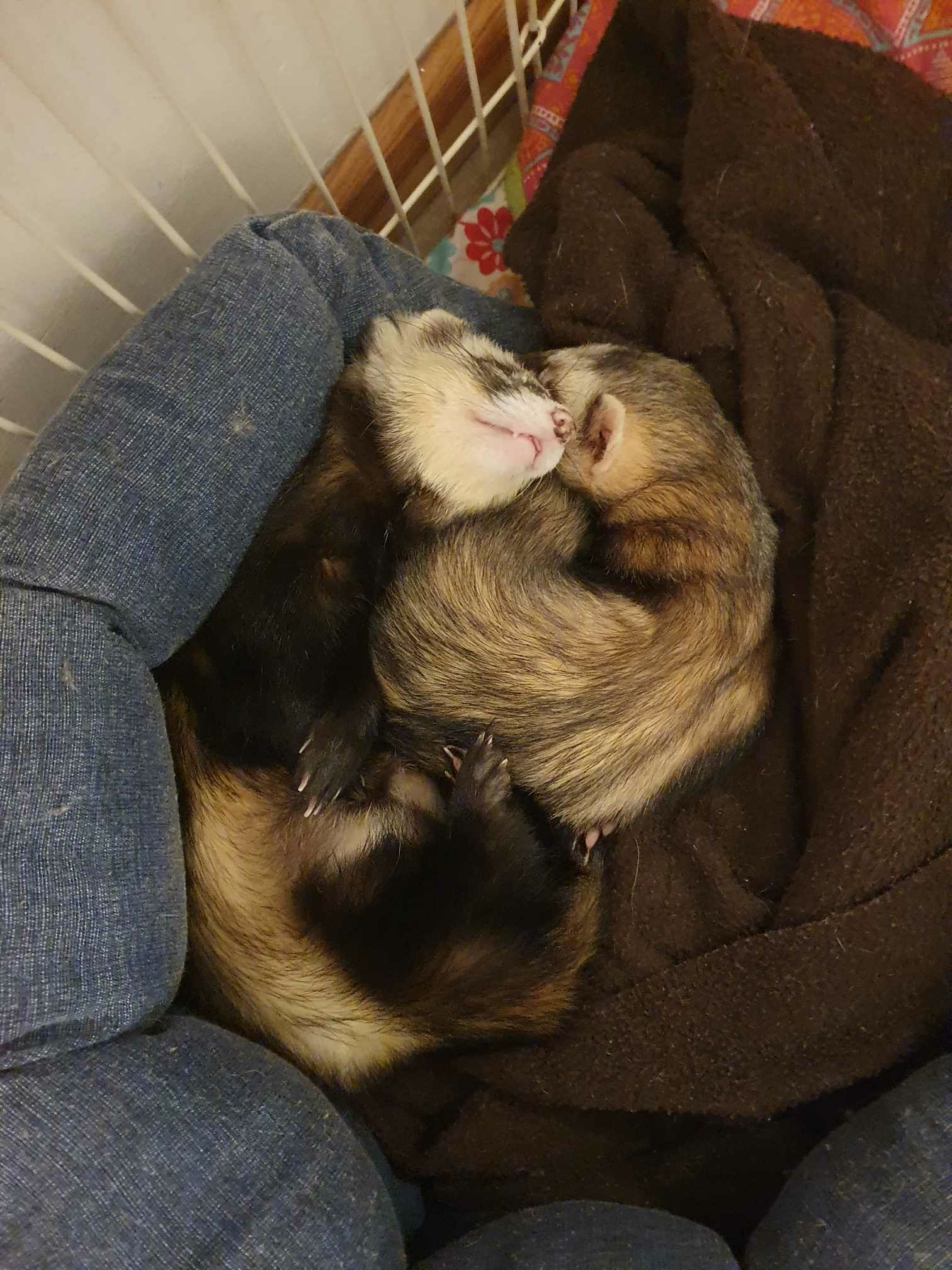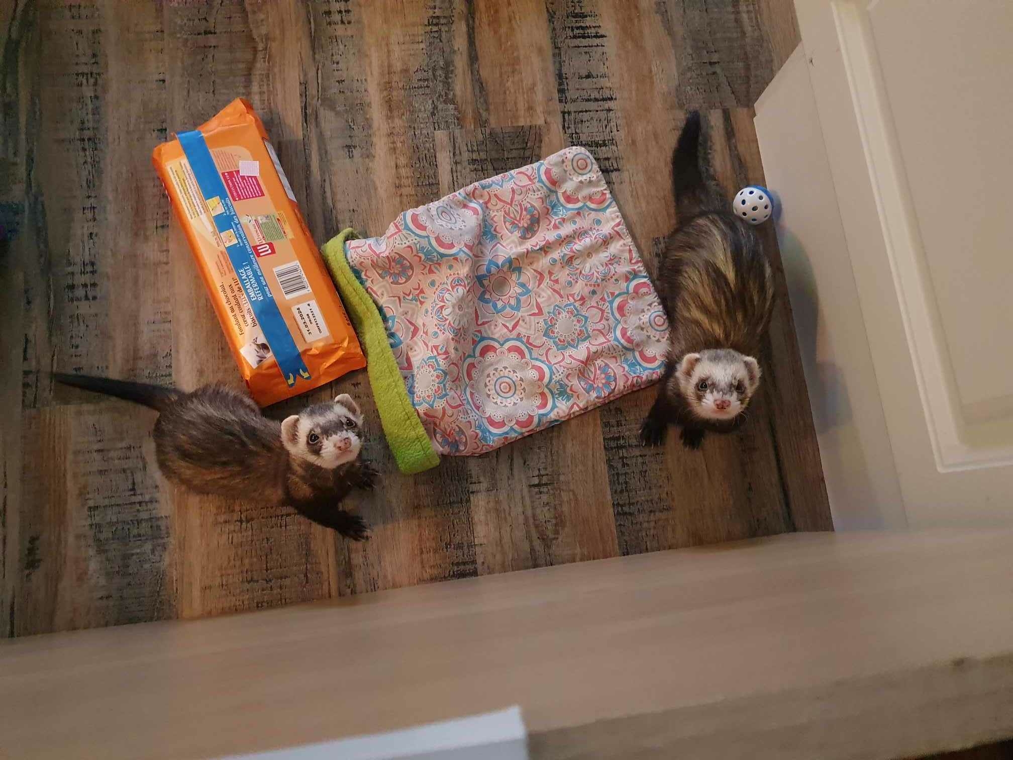 Buffalo Fouif et Lucky Pout (oui ce sont de ptits cowboys !!) sont arrivés avec Billy the Fouif et Pout Cassidy, ils viennent d'un sauvetage de 25 furets en région parisienne (c'est ça quand on achète 4-5 furets entiers mâles et femelles et qu'on laisse tout le monde ensemble sans stériliser.... ).